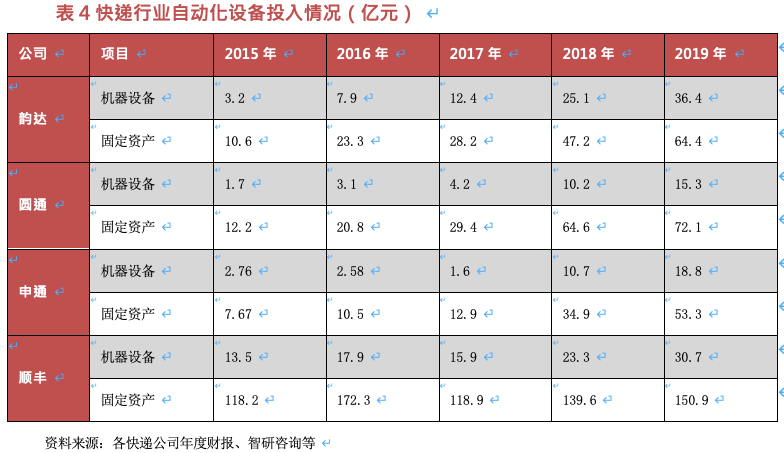 圓通快遞 2019 年上半年投入的自動化設備新增一倍;