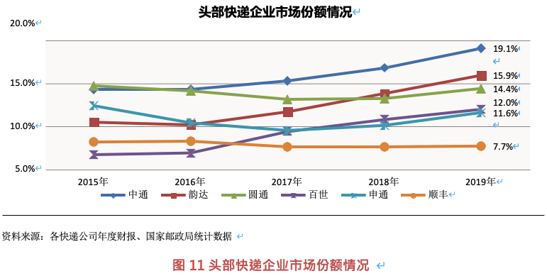 據統計,快遞行業龍頭企業規模效應優勢更加明顯,并且隨著業務鏈的延伸,其成本優勢在價格方面表現明顯,以三通一達、順豐、百世等行業龍頭企業為代表的快遞企業單票快遞價格持續下降,但是此類快遞行業頭部快遞公司企業毛利率并未大幅度下跌。但是快遞行業整體價格的下降,對于規模效應不顯的中小企業影響巨大。