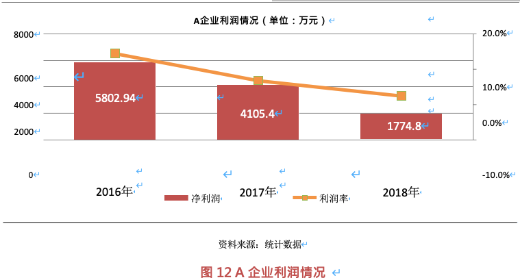 由于下游快遞行業持續降低運營成本,頭部快遞企業也紛紛成立自動化設備公司,以滿足其自身對部分自動化設備的需求,從而造成自動分揀設備行業競爭更加激烈,行業毛利率整體降低,且快遞企業之間的價格戰也必然會波及到自動分揀設備行業,促使行業優勝劣汰。據統計,因受行業內部價格競爭、下游快遞行業成本下調等原因影響,自動分揀設備企業利潤均受到不同程度影響,以 A 企業為例。